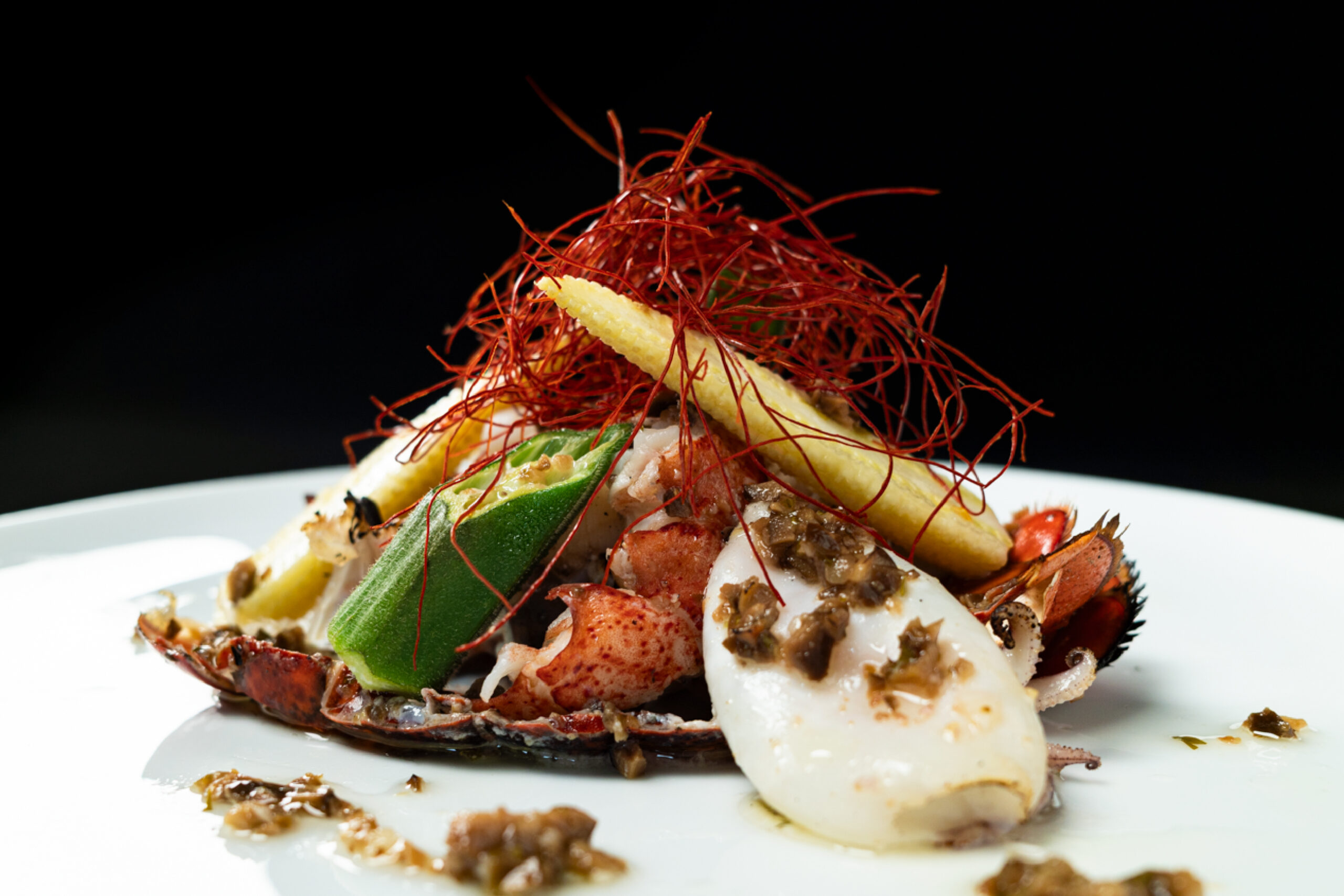 オマール海老とヤリイカのグリル 黒オリーブソース