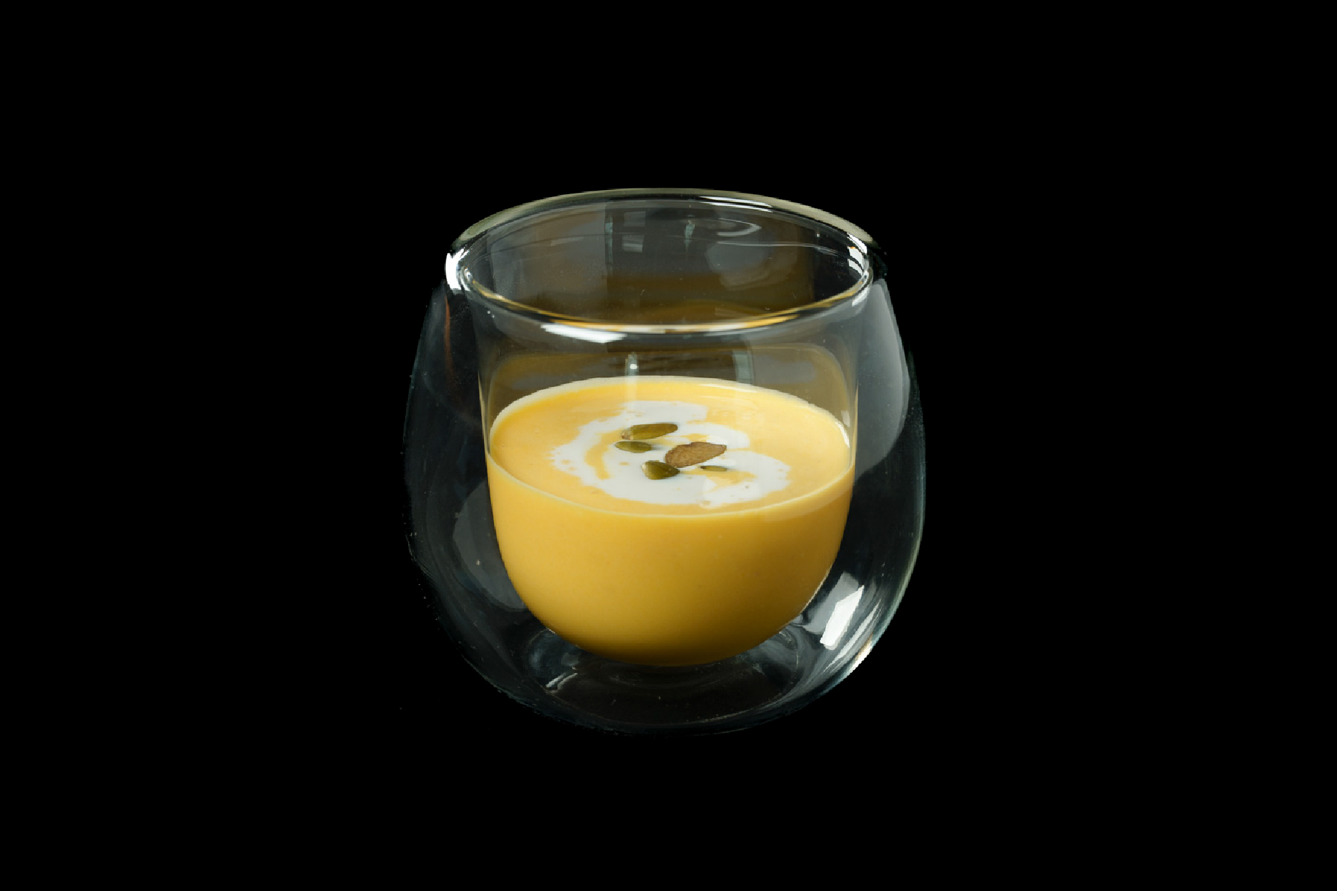 今月のスープは、かぼちゃの冷製ポタージュ。 夏の終わりから秋口にかけて甘みを帯びるかぼちゃを丁寧に裏ごしし、ラム酒を隠し味に添えました。 仕上げに添えたかぼちゃの種のナッティな風味とともに、舌の奥にほんのりと残る甘みが印象的。 余韻は軽やかで、さっぱりとした口当たりの冷製スープです。