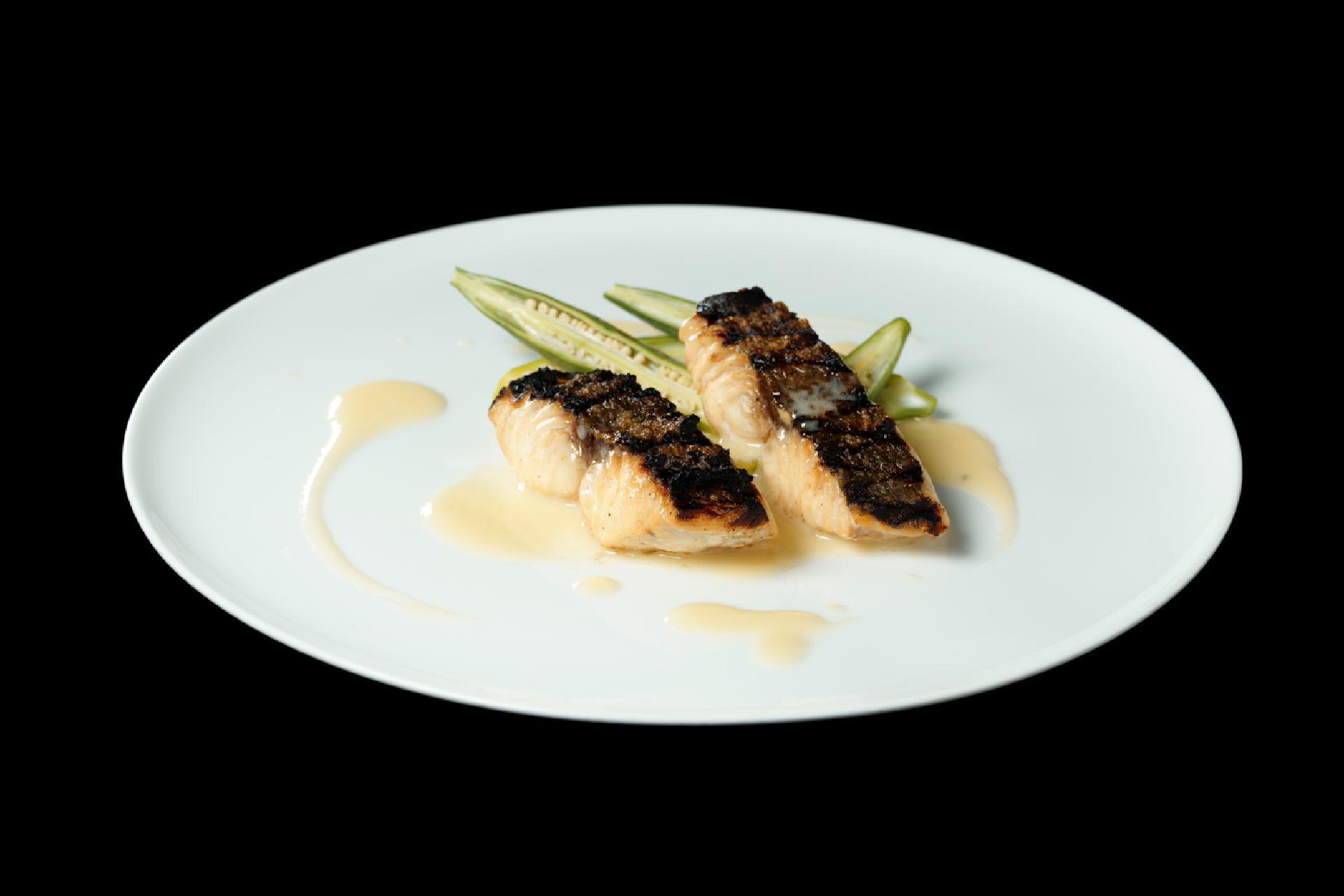 今月の魚料理は、目鯛のグリル。 脂ののった目鯛をグリルで香ばしく焼き上げたのち、オーブンでふっくらと火入れ。 ソースはクラシックな白ワインとバターのソース “ブールブラン” を基軸に、レモングラスのさわやかな香りを加えました。 まろやかな酸味と穏やかな香りの重なりが、魚の旨味を静かに引き立てます。