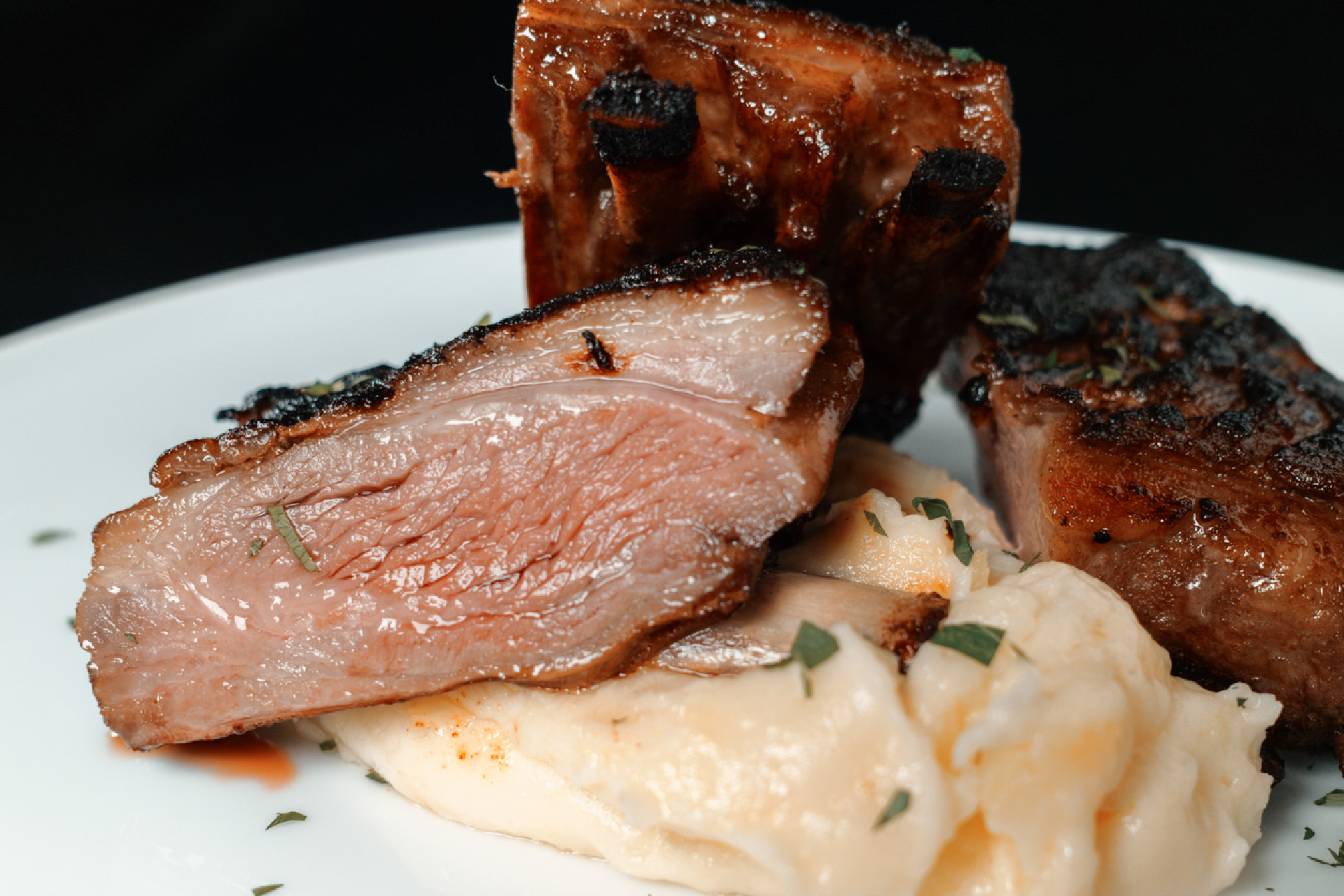 クミンやコリアンダーなど中東系スパイスでマリネしたニュージーランド産仔羊のスペアリブを香り高くローストに仕上げました。 やわらかさの中に適度な噛みごたえがある肉質。 骨の周りには肉の旨味が凝縮しており、一口ごとに味わいの深みを楽しめます。 スパイスの香りと仔羊のやさしい旨味が重なり合い、まだ暑さの残るこの季節に、食欲を静かに呼び覚ますひと皿です。